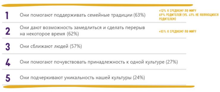 — Мы сами были это ответом очень удивлены. Объяснить его я могу только тем, что соцсети доступны и к ним можно вернуться, а еда, перекус — это то, что критично важно для качества жизни каждого человека каждый день. 62% опрошенных в России сказали, что не представляют жизнь без шоколада, 63% — не представляют без снеков в целом. Еда для них — это один из факторов счастья, здоровья, социальной активности. Особенно учитывая то, что в России люди любят объединяться вокруг еды, это часть их культурных ценностей.