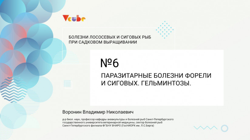 Владимир Воронин, д. б. н., проф. кафедры аквакультуры и болезней рыб Санкт-Петербургского государственного университета ветеринарной медицины. Лекция проведена в рамках курса «Болезни лососевых и сиговых рыб при садковом выращивании в условиях Северо-Запада России».