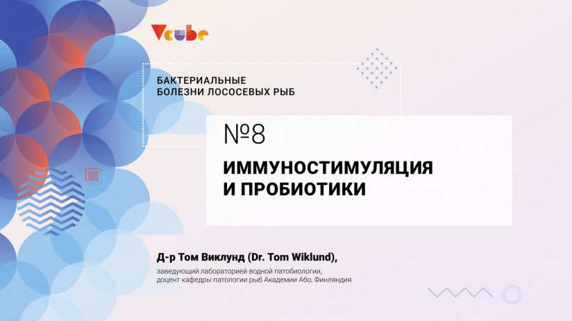 Заключительная лекция Тома Виклунда, заведующего лабораторией водной патобиологии, доцента кафедры патологии рыб Академии Або, Финляндия посвящена иммуностимуляции и пробиотикам. В ходе лекции эксперт познакомит с ключевыми определениями и механизмами развития бактериальных инфекций, различными составами препаратов, а также, как иммуностимуляция и пробиотики влияют на конкретные бактериальные заболевания рыб.