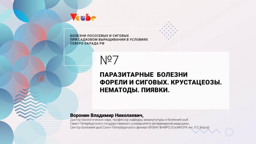 Седьмая лекция Владимира Воронина, д. б. н., проф. кафедры аквакультуры и болезней рыб Санкт-Петербургского государственного университета ветеринарной медицины, посвящена паразитическим рачкам. В лекции будет рассмотрена их роль, виды и влияние на здоровье рыбы. Также речь пойдет о нематодах и пиявках.