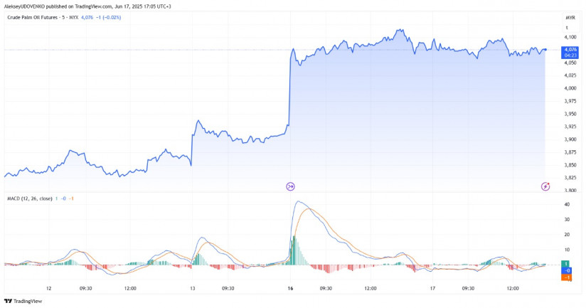 Пальмовое масло, ранее достигшее семинедельного максимума, несколько скорректировалось. По данным на середину июня, прогноз до конца месяца сохраняется в диапазоне 3800–4100 ринггитов за тонну, с возможным ростом до 4200 ринггитов во втором полугодии. При этом в Малайзии запасы выросли на 10,5% по сравнению с предыдущим месяцем, достигнув 1,75 млн тонн — самого высокого уровня с сентября 2024 года, что может сдерживать цены.