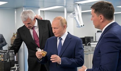 Путину представили склад приема и хранения сырья, реакционный зал и производственную лабораторию. Главу государства сопровождали и давали пояснения губернатор Магаданской области Сергей Носов, генеральный директор ООО «Тихрыбком» (компании-учредителя завода) Николай Котов и директор ООО «Омега-Си» Анатолий Попов.
